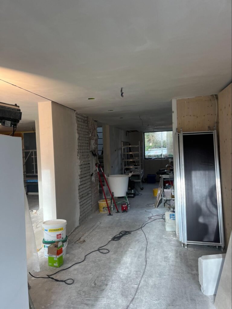 Strakke wanden en plafonds, perfect voorbereid voor schilderen of spuiten. Geschikt voor renovatie en nieuwbouw.